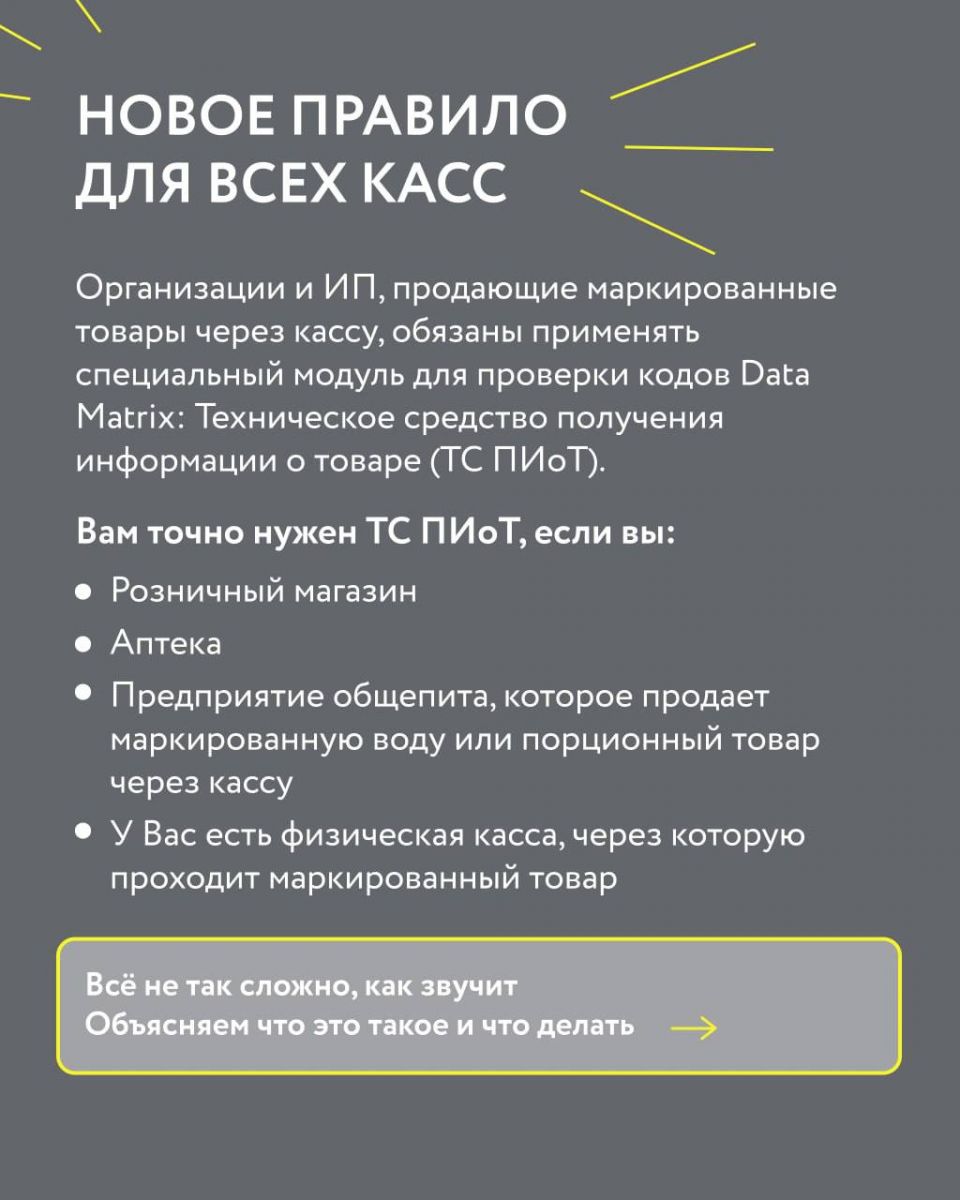 С 28 декабря 2025 года при продаже маркированных товаров через контрольно-кассовую технику обязательно использование Технического средства получения информации о товаре (ТС ПИоТ) — требования установлены Постановлениями Правительства РФ № 515 и № 303.